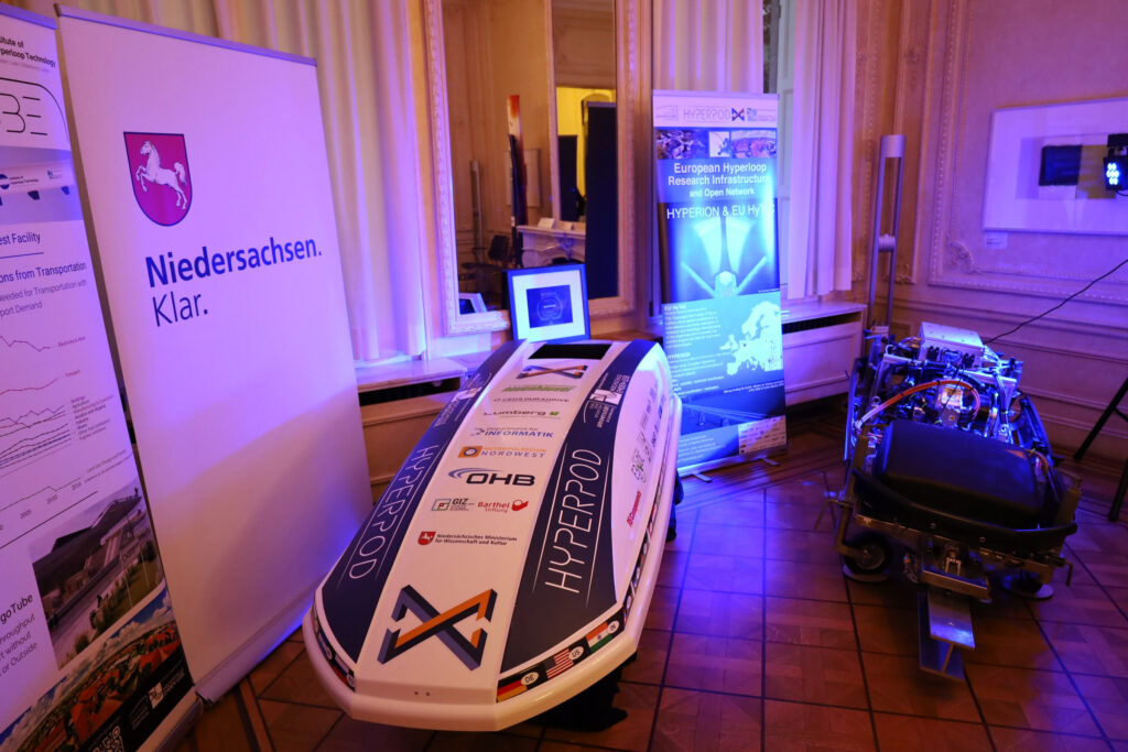 The exhibit of the prototype of the student teams HyperPodX of the University of Applied Sciences Emden/Leer and the University of Oldenburg brought the competition atmosphere from Los Angeles to Brussels. Keynote speeches highlighted the innovative approach of Hyperloop technology from a European and global perspective.